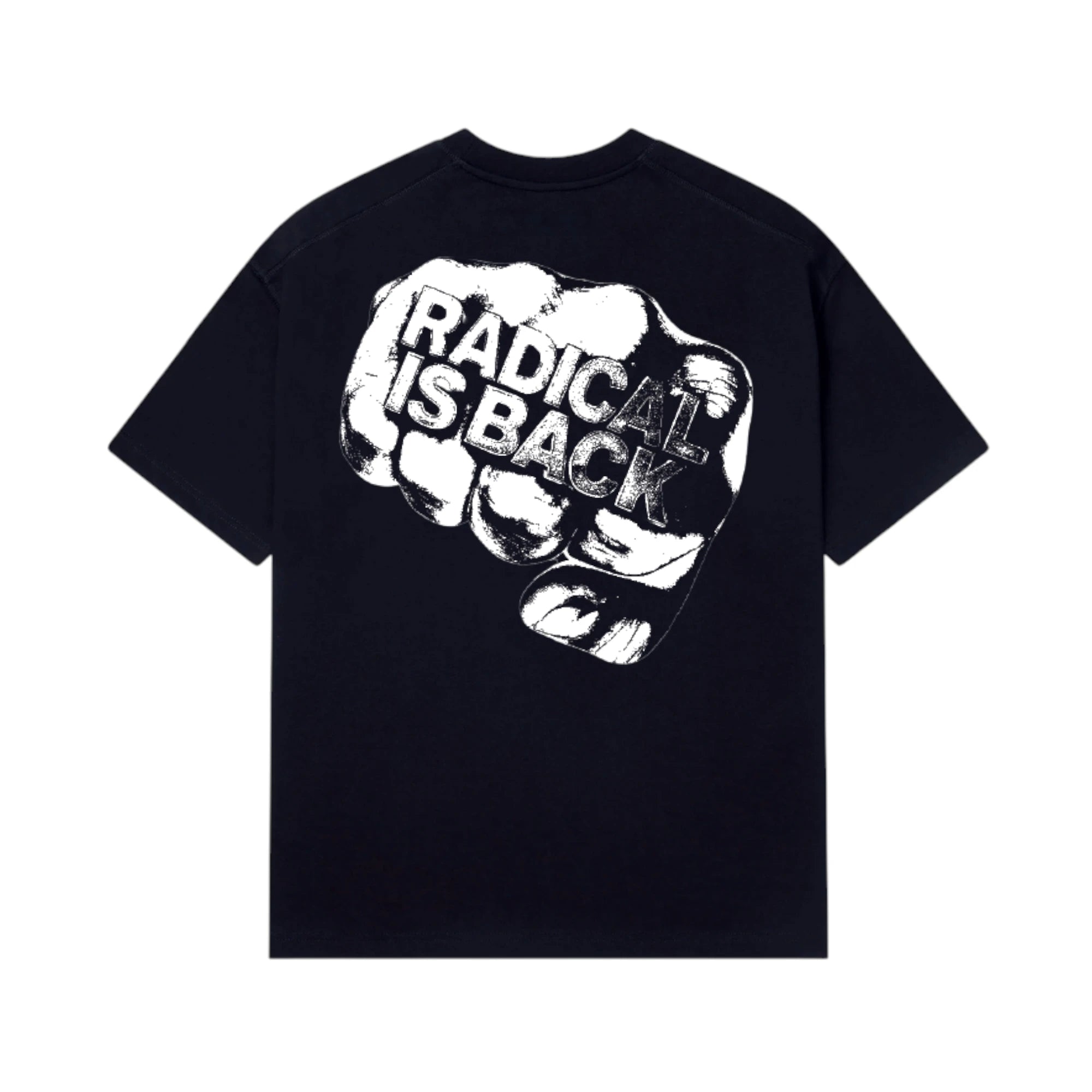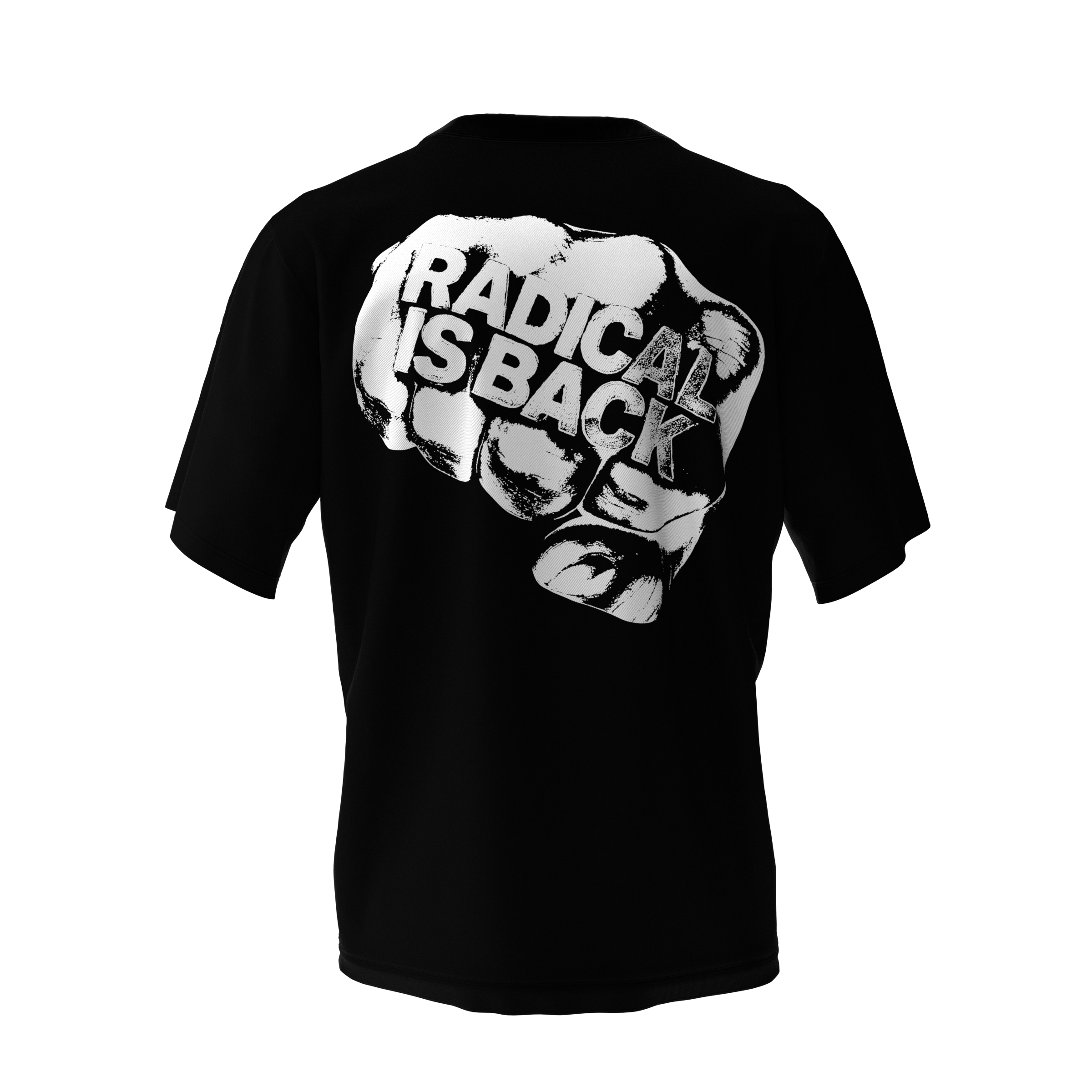 This T-shirt features a clean Radical Is Back chest print and a striking full-back fist graphic for maximum impact. Made from 100% premium cotton, designed for comfort and everyday wear. On the street, on stage, or at the gym.