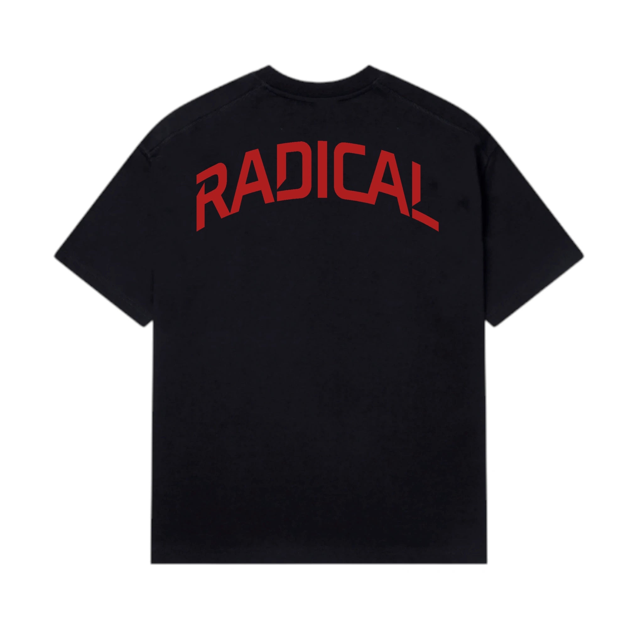 Stay light, stay moving. The RADICAL Tee is built for those who push the pace—whether you're hitting the gym, stepping on stage, or taking on the day at full intensity. The clean black design paired with the bold red chest logo and arched RADICAL print on the back delivers a sharp, energetic look.