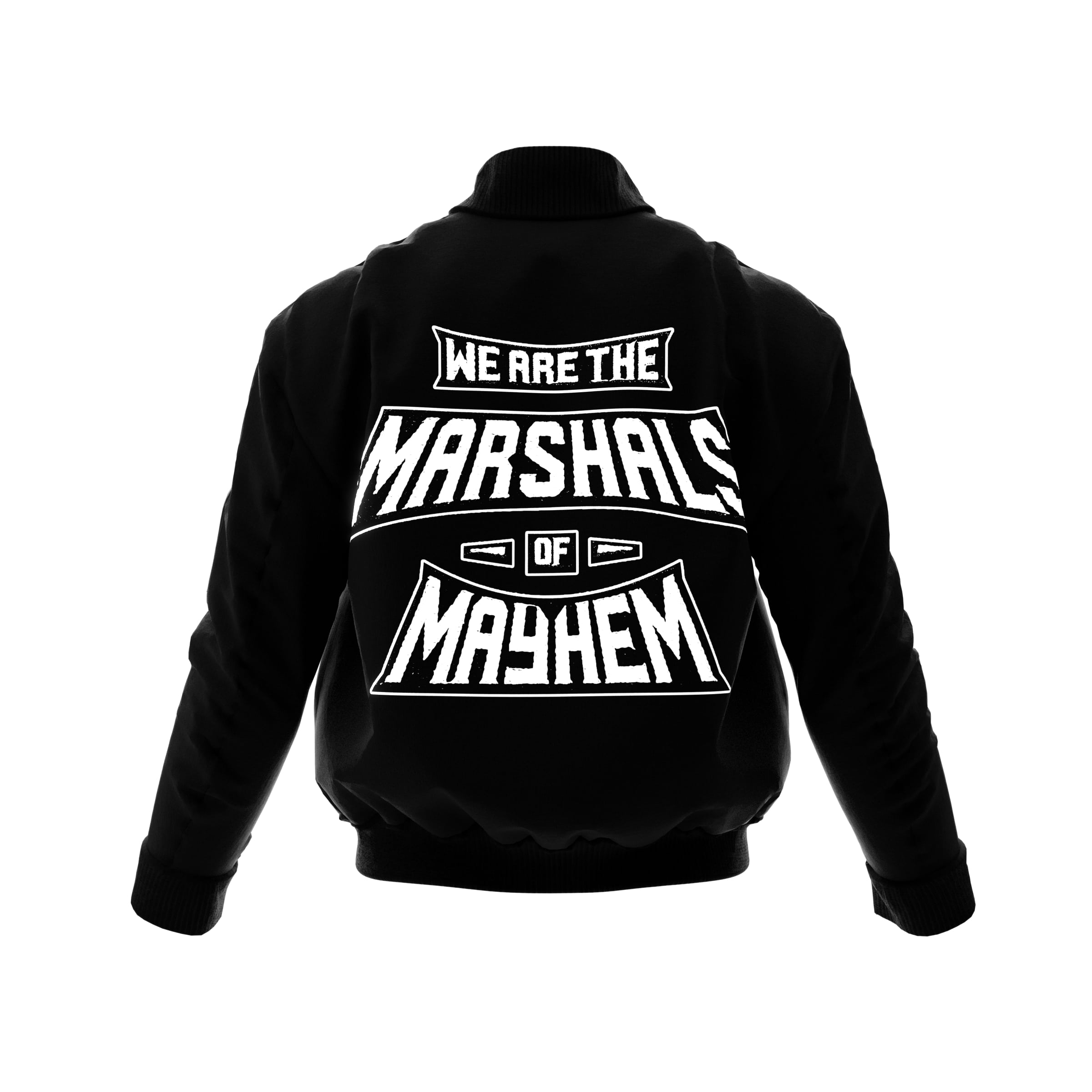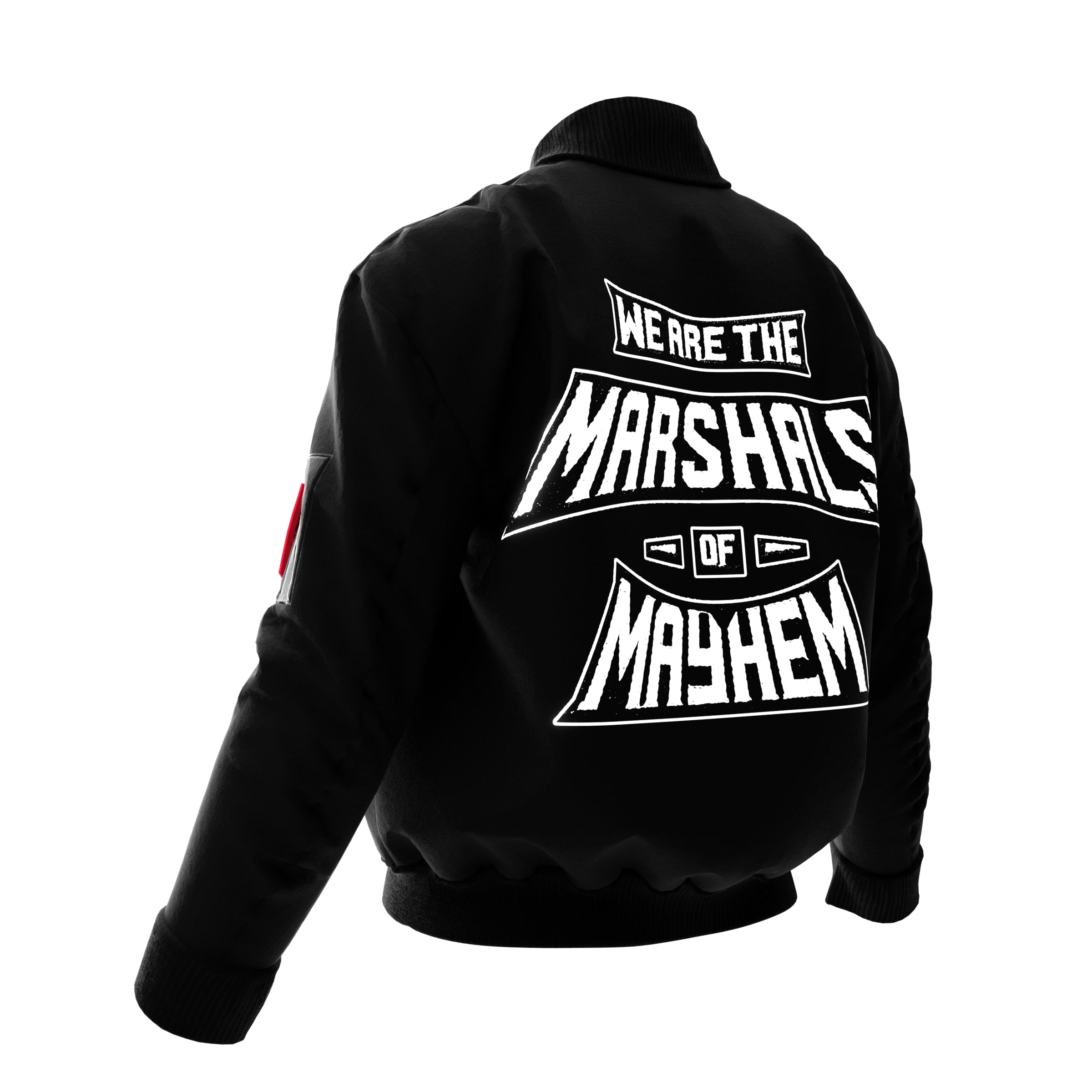 Become part of the unstoppable force. The Marshals of Mayhem Bomber Jacket is designed for those who carry presence. On stage, in the crowd, and everywhere in between. Crafted from a high-quality, heavyweight fabric, this bomber offers durability and comfort with a structured fit. The front features embroidered Marshals of Mayhem insignia, while the back delivers a bold statement: